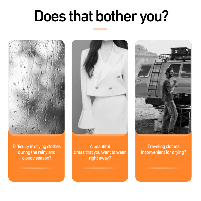 Gracias a nuestra tecnología de circulación de aire optimizada, secas tu ropa en minutos – no horas! Perfecta para emergencias como lluvias repentinas, derrames de bebidas o después de la playa. Olvídate de esperar a que se seque al aire libre y lucir siempre fresco y seco.