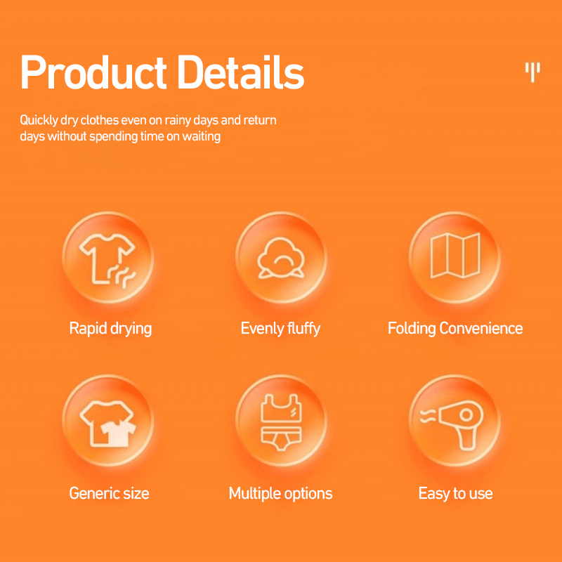 - Seca en minutos: Enciende el secador en modo calor y espera solo 6 minutos. ¡Listo! Tu ropa estará seca, fresca y lista para usar.