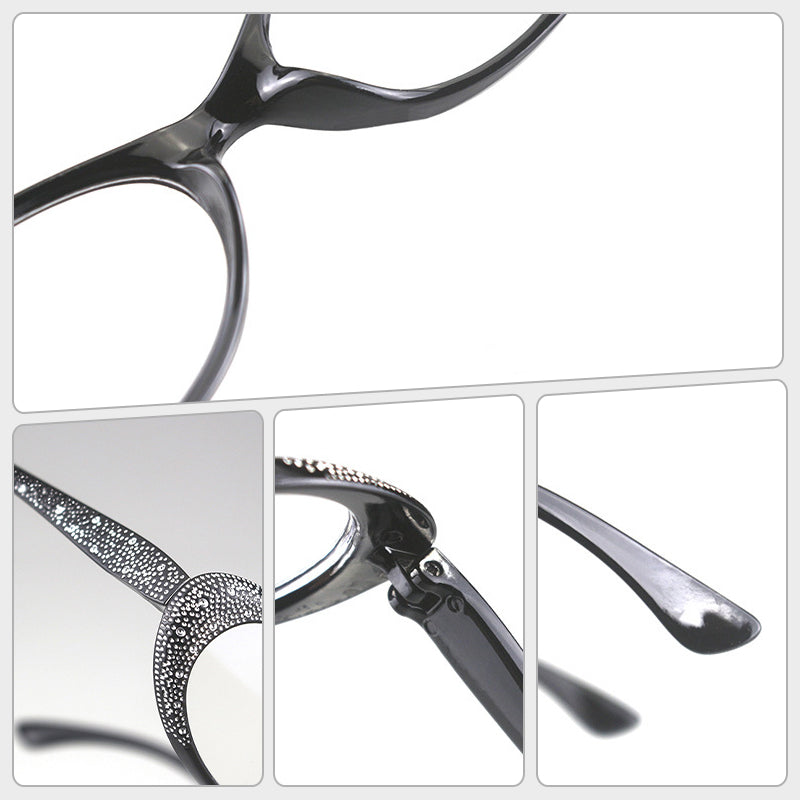 DISEÑO DE OJO DE GATO DE MODA : con un elegante colgante de diamantes de imitación en el elegante marco de ojo de gato, estas gafas añaden un toque de glamour a tu look al tiempo que brindan protección ocular esencial mientras trabajas o lees.