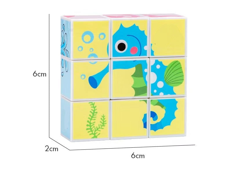 🎨 Diseños multitemáticos vibrantes Cada cubo ofrece seis patrones diferentes en varios temas como animales y vehículos. Esta variedad mantiene el juego emocionante y expande el conocimiento y el sentido estético de tu hijo mientras explora nuevos mundos.